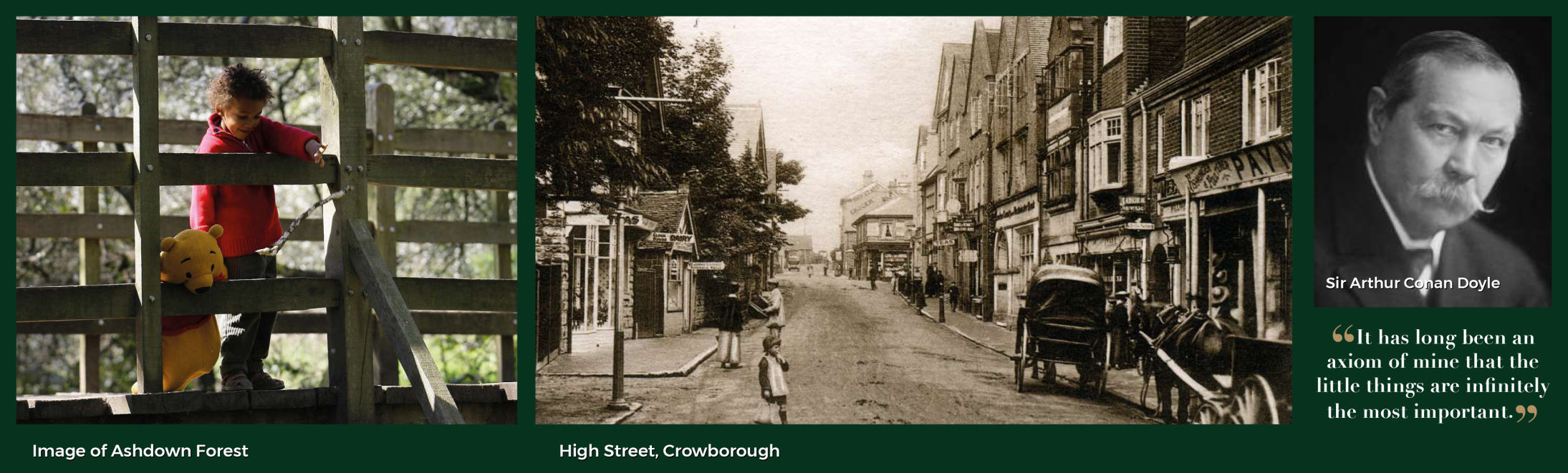 The great Sir Arthur Conan Doyle, author and creator of the word famous Sherlock Holmes, called Crowborough his home for 23 years of his life, whilst nearby Ashdown Forest was A. A. Milne’s setting for the adventures of possibly the most famous bear in the world: Winnie the Pooh.